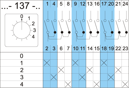 4G10-137-U Przełącznik wielopołożeniowy 0-1-2-3-4, montaż tablicowy, 3-biegunowy, 10A