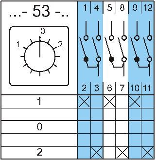 4G16-53-PK Łącznik krzywkowy 1-0-2 w obudowie , 3-biegunowy , 16A