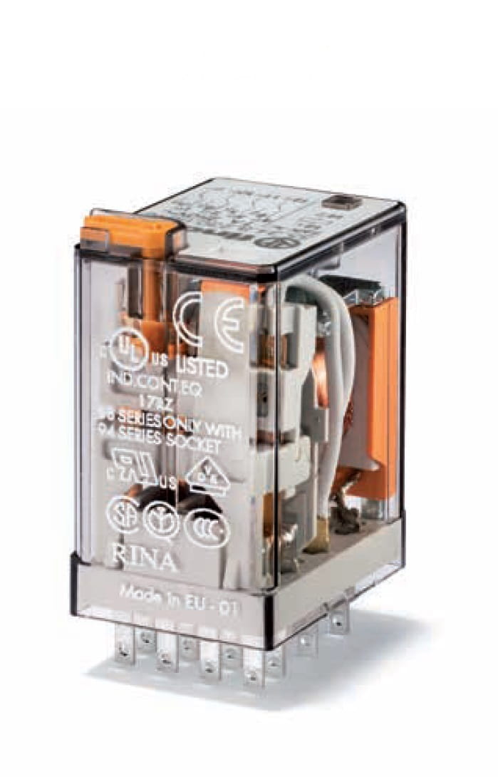 55.34.8.110.0040 Przekaźnik 4P 7A cewka 110V AC, przycisk testujący, mechaniczny wskaźnik zadziałania