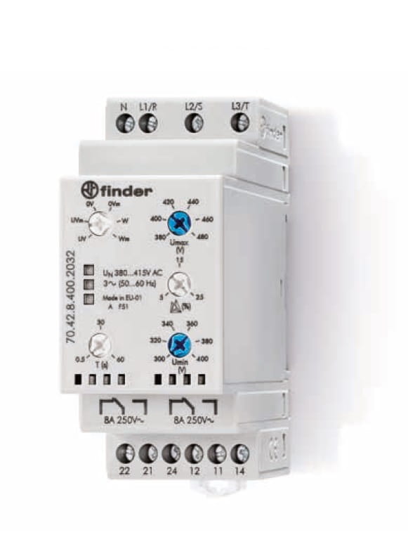 Elektroniczny przekaźnik nadzoru napięcia trzech faz (380…415V) z przewodem neutralnym