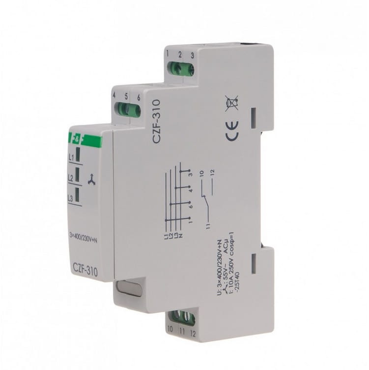 Czujnik zaniku fazy CZF-310 do zabezpieczenia silnika elektrycznego zasilanego z sieci trójfazowej w przypadku zaniku napięcia w co najmniej jednej fazie lub asymetrii napięć między fazami, grożącymi zniszczeniem silnika.