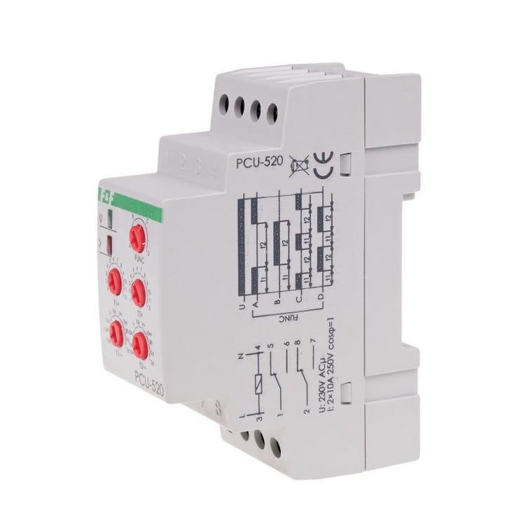 PCU-520 Przekaźnik czasowy 2-funkcyjny (nastawa 2 czasów T1 T2, styk: 2xNO/NC 230V)