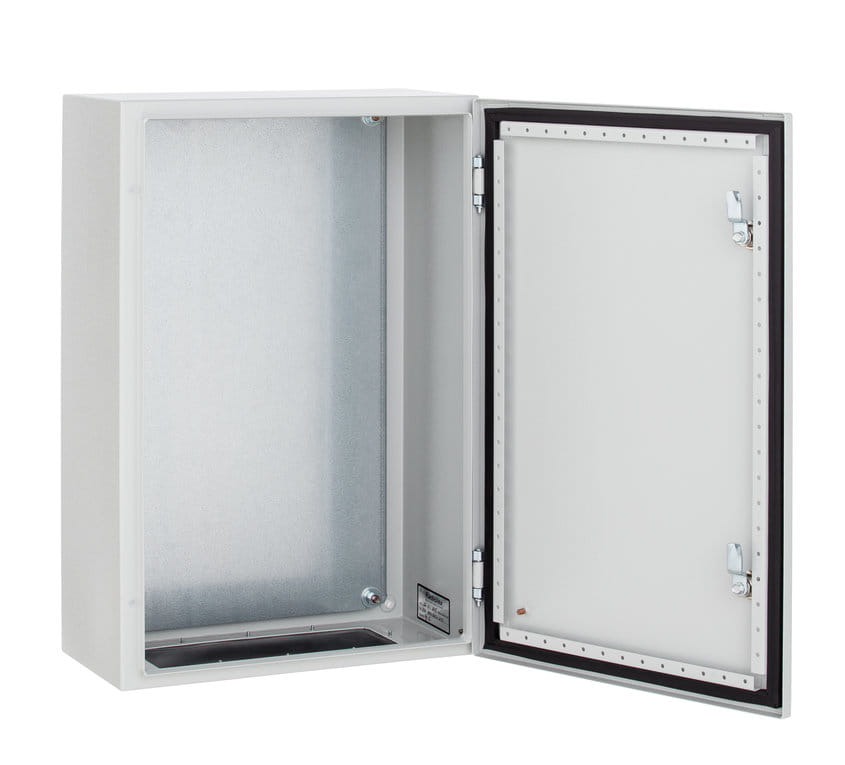 Obudowa uniwersalna z płytą montażową i pełnymi drzwiami. Obudowa kompletnie skręcona, z dołączonym kluczem.Informacje ogólne:
