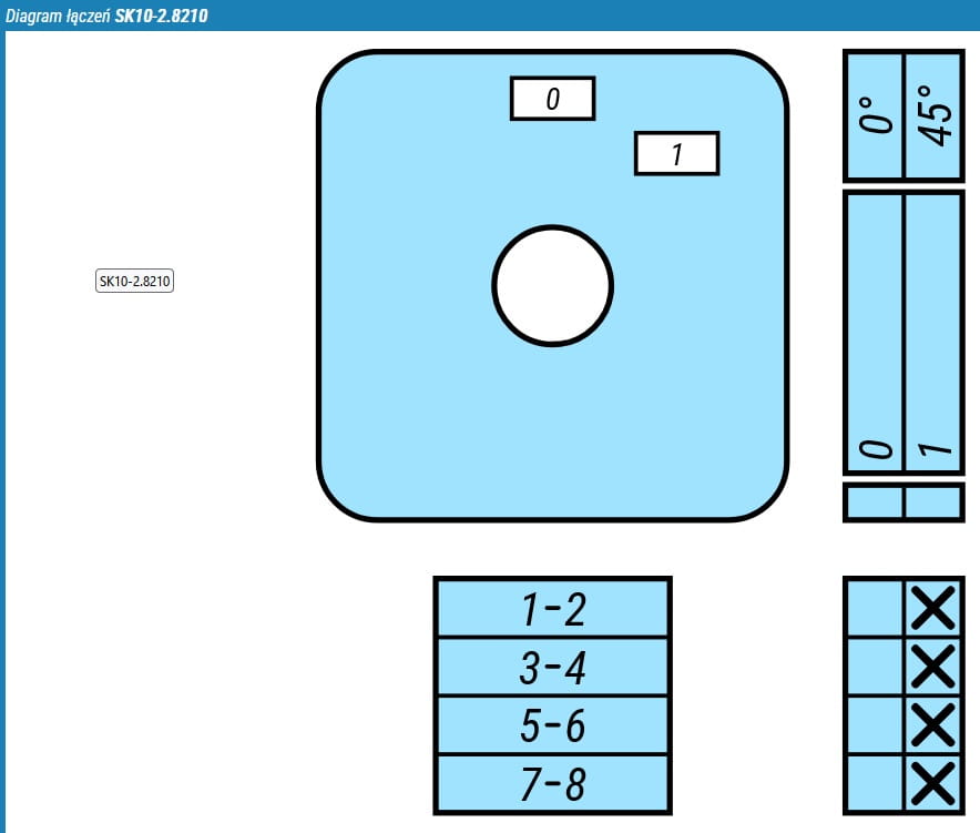 SK10-2.8210\OB11ZC Łącznik krzywkowy 10A, Rozłącznik 0-1 (45st), 4-biegunowy, w obudowie, czoło żółto-czerwone, IP65