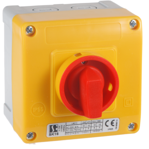 SK10-4.8240\OB11ZC Łącznik krzywkowy 10A, Rozłącznik 0-1 (45st), 7-biegunowy, w obudowie, czoło żółto-czerwone, IP65