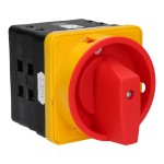SK32-2.8210\P08 Łącznik krzywkowy 32A, Rozłącznik 0-1 (45st), 4-biegunowy, mocowany do pulpitu, czoło żółto-czerwone, IP65
