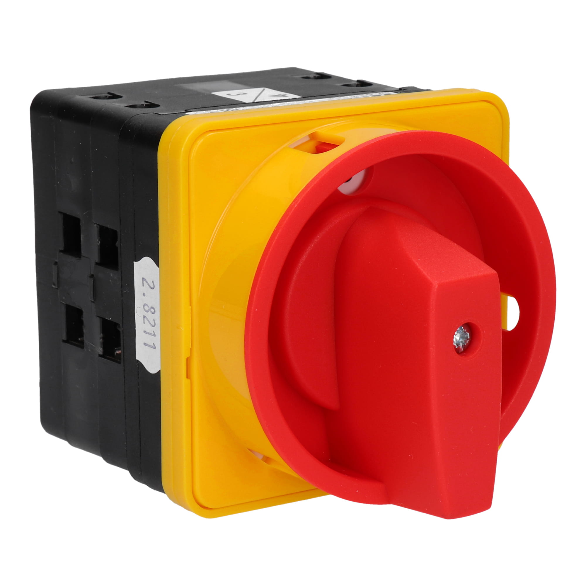 SK63-2.8210\P08 Łącznik krzywkowy 63A, Rozłącznik 0-1 (45st), 4-biegunowy, mocowany do pulpitu, czoło żółto-czerwone, IP65