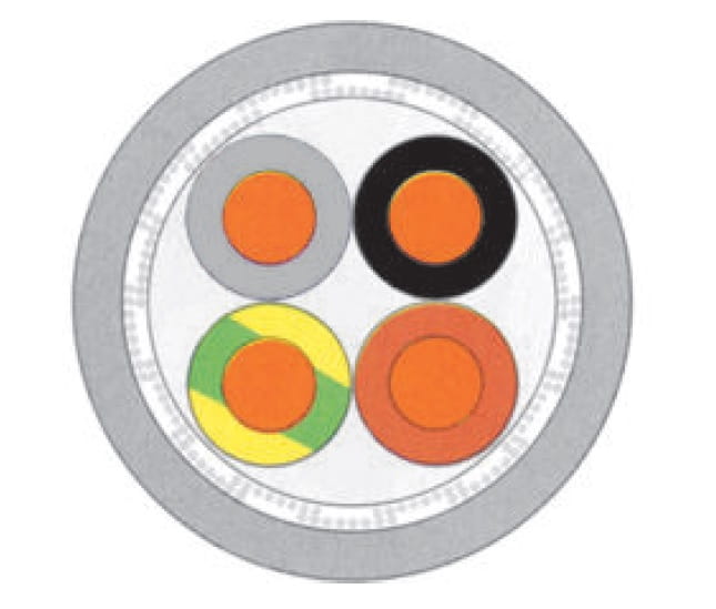 TF-EMV-2YSLCY-J 4G6 0,6/1kV Przewód zasilający silniki, falownikowy, podwójnie ekranowany, do okablowania przetwornic częstotliwości (22087)